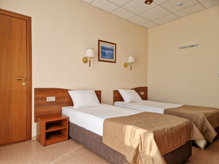 Оснащение односпальная кровать, шкаф/гардероб, телевизор, телефон, холодильник, чайник, столовые приборы, набор полотенец, туалетные принадлежности, санузел с душем/с ванной, кондиционер