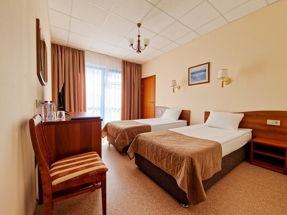 Оснащение 2-спальная кровать, санузел с ванной, балкон, кондиционер, мягкая мебель, шкаф/гардероб, телевизор, телефон, холодильник, чайник, столовые приборы, фен, халат, набор полотенец, туалетные принадлежности