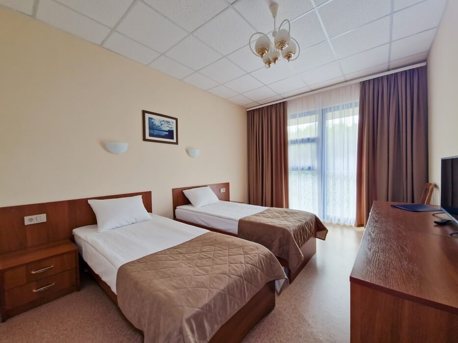 Оснащение 2 раздельные кровати, шкаф/гардероб, телевизор, телефон, холодильник, чайник, столовые приборы, набор полотенец, туалетные принадлежности, санузел с душем/с ванной, кондиционер