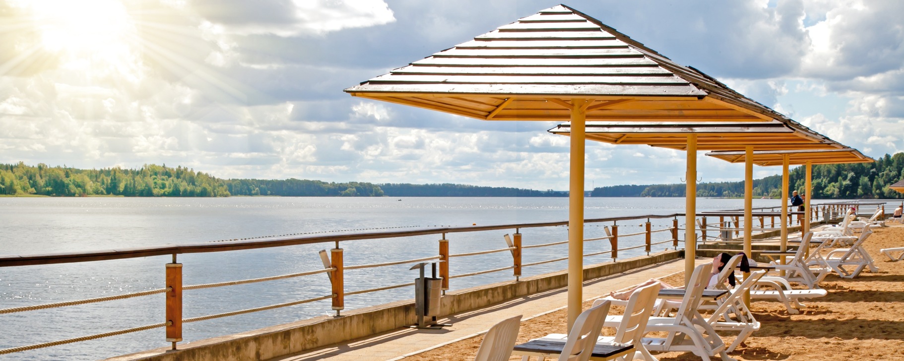 - Оборудованная пляжная зона (зонтики и лежаки предоставляются бесплатно) (летом);