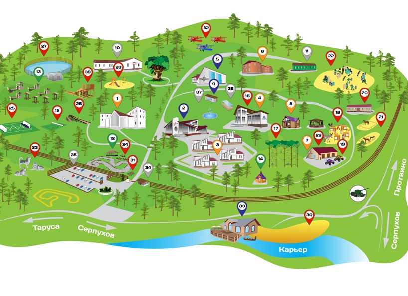 Парк-отель "Русский" расположен в большом сосновом массиве, всего в 94 км от Москвы по Симферопольскому шоссе, в Серпуховском районе, в 900 метрах от реки Оки. Территория отеля занимает 74 гектара, что создает идеальные условия для отдыха на природе.